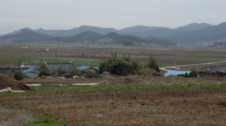 창문 밖으로 저 멀리 아스라이 보이는 보리밭과 야산 둔덕의 풀빛이