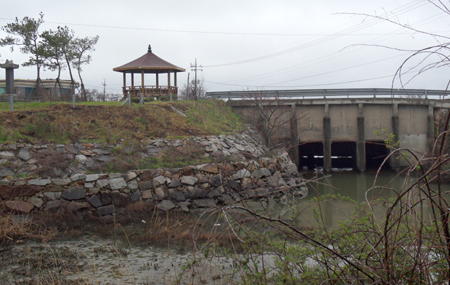 수문 위에 서호 간척지를 조성했던 무송 현준호의 업적을 기리는 공덕비가 세워져 있다. 비의 뒷면에 한자로 쓰여 있는데 한글로 번역하여 조그마한 비석에 새겨 놓았다. 비에 새겨진 내용은 다음과 같다.
