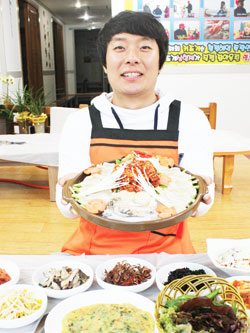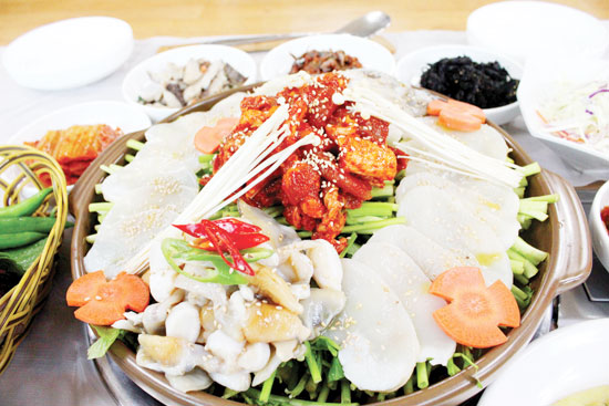 키조개뚝배기탕은 1인분에 7천원, 낙지비빔밥은 1인분에 1만원에 즐길 수 있고 예약및 문의전화는 473-7895번으로 하면 된다.