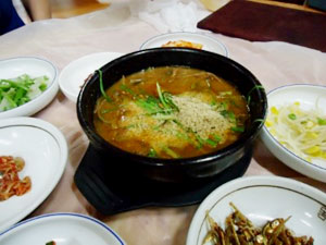 짱뚱어를 통째로 넣지 않고 추어탕처럼 짱뚱어를 갈아서 시래기, 제철 나물들과 함께 끓여낸다. 짱뚱어의 육질을 느낄 수 없다고 섭섭해하지 말자. 짱뚱어탕 8000원. (061)473-6700