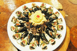 또 소고기요리에는 생고기, 육회, 소고기초밥, 사태쌈, 안심구이가 마련되어 있고 해산물요리에는 광어회, 사철회, 전복, 새우구이, 물회, 오징어콩나물찜, 오리떡갈비 등이 있다.