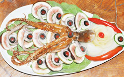 먼저 낙지요리에는 살아있는 낙지를 있는 그대로 느낄 수 있는 낙지탕탕이, 낙지죽, 낙지호롱구이, 낙지간장조림, 연포탕 등이 마련되어 있다.