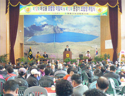 김일태 군수, 김연일 부의장 등 기관단체장과 농협관계자, 지역 주민 등 300여명이 참석한 가운데 이․취임식 행사가 장천초등학교 은적관에서 성대하게 진행됐다.
