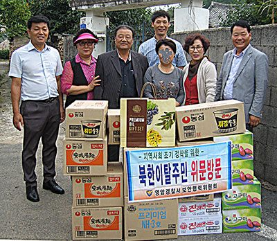 현삼식 회장, 박차순, 김영자, 이만진 임원진을 비롯 김재찬 보안계장 등 6명은 북한 이탈주민들을 직접 방문해 푸짐한 생활필수품을 전달하고, 고향이 있어도 가지 못하는 그들의 심정을 함께 나누고 위로격려했다.