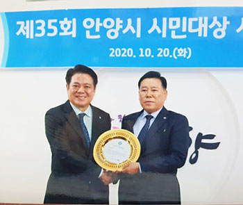 안양시민 대상은 근면 성실한 자세로 지역사회 발전에 기여한 시민에게 수여되는 상으로 1986년 제정돼 올해로 제35회째를 맞아 지난 10월 20일 안양시청에서 열렸다.