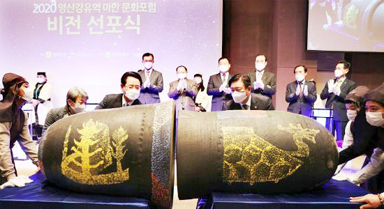 지난 11월 13일 서울 한국프레스센터에서 영산강 유역 마한문화권 마스터 플랜 수립을 위한 국제학술대회가 열렸다. 국제학술대회 행사 이전에 ‘잠들었던 고대 해상왕국 마한을 깨우다’라는 주제의 비전 선포식이 열렸다. 비전 선포식에는 김영록 전라남도지사, 정재숙 문화재청장, 전동평 영암군수를 비롯 마한문화권발전협의회 11개 시장·군수, 유인학 마한역사문화연구회장 등 여러 내빈들이 함께 했다. 서울 마당 대형전광판으로 생중계된 비전 선포식에선 국립나주문화재연구소가 기증한 대형옹관 재현품을 활용해 잠들었던 고대 해상왕국 마한을 깨우고 도민의 염원을 담아 옹관을 봉인하는 독특한 퍼포먼스를 펼쳤다. 봉인된 옹관은 전남도청에 전시에 상시 공개할 예정이라고 한다.