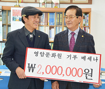 김한종(85) 전 금정면 노인회장은 11월 25일 영암문화원에 지역 문화예술 발전을 위해 써달라고 200만원을 기탁했다.