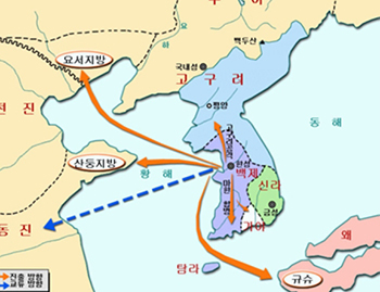 <삼국의 발전> 백제는 4세기 중반 근초고왕 때에 크게 발전하였다. 이 때의 백제는 마한 세력을 정복하여 전라도 남해안에 이르렀으며, 북으로는 황해도 지역을 놓고 고구려와 대결하였다. 또, 낙동강 유역의 가야에 대해서도 지배권을 행사하였다.
