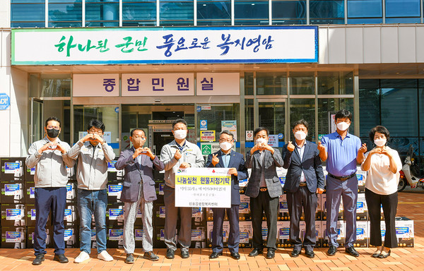 삼호읍은 8월 26일 행정복지센터에서 강찬원 군의회 의장, 고천수 경제건설위원장, 오자영 읍장, 박한규 현대삼호중공업 총무팀장 등이 참석한 가운데 ‘행복한 지역사회 만들기’를 위한 현물 기탁식을 가졌다.