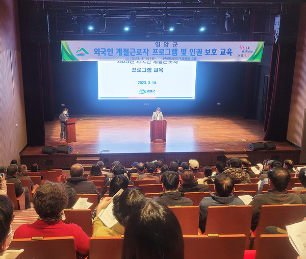 영암군은 3월 14일 외국인 계절근로자 프로그램의 원활한 운영을 위해 계절근로자 가족과 고용주 등 250여 명을 대상으로 계절근로자 프로그램 소개 및 인권 보호 교육을 실시했다.