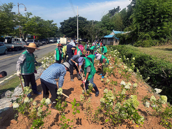 박찬 회장은 “앞으로 탄소중립을 실천하고, 주민들이 힐링할 수 있는 아름답고 깨끗한 마을을 가꾸기 위해 이번에 조성한 수국공원을 정성으로 가꿔 나가겠다”고 말했다.