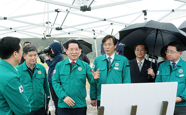 김영록 전라남도지사는 기후환경 변화에 따른 잦은 강우 대비 영농기 물 관리 및 자연재해 사전 대응을 위해 3일 신북면 용산저수지 자동 수위 스마트시스템 설치현장을 찾아 운영현황을 살피고 안전사고 예방을 당부했다.<사진>