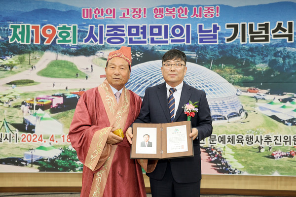 김영근(85) 전 대한노인회 영암군지회장이 18일 열린 제19회 시종면민의 날 행사에서 시종면민의 상을 수상했다.