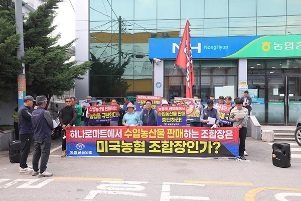 영암군농민회는 “정부의 잘못된 정책과 기후 위기로 인해 농산물가격이 조금이라도 오를 것 같으면 어김없이 수입농산물이 들어와 농산물가격을 곤두박질치게 만드는 것이 대한민국 현실이다.”며 “우리 농민들의 생존권을 위협하고 농민들이 만든 협동조합인 농협에서 수입농산물을 판매하는 것은 조합원들의 등에 칼을 꽂는 행위로 절대 용납할 수 없다.”고 강조했다.