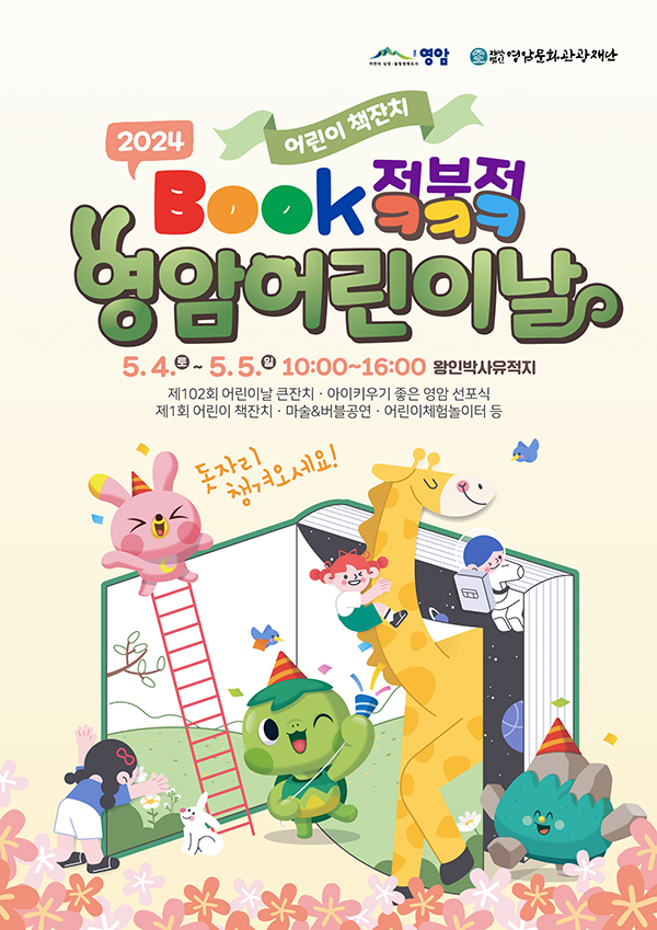 어린이 책 잔치는 어린이와 가족이 다양한 책과 함께하는 잔치 속에서 피크닉하듯 놀며 인문 감성을 기르고, 책과 가까워지는 장. ‘BOOK적북적 영암 어린이날’을 주제로 처음 열리는 이번 책 잔치는 △북토크 △대표전시 △체험행사 △경연대회 △부대행사 5개 섹션으로 구성돼 있다.