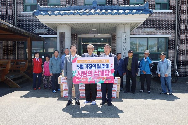 이날 행사는 가정의 달인 5월을 맞아 지역사회 발전을 위해 헌신한 어르신에게 감사의 마음을 전하기 위해 마련됐으며, 군서면 노인복지회관 등 11개 복지회관에 약 400만원 상당의 삼계탕이 전달됐다.