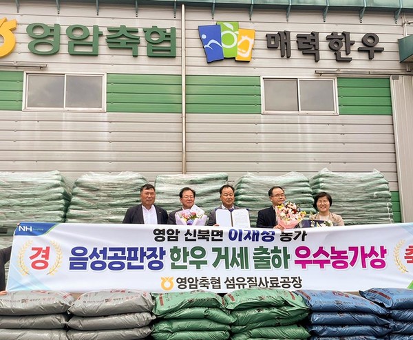 신북면 이재성 축산농가가 지난 27일 농협경제지주 음성축산물공판장에 한우를 출품해 ‘우수 한우 출하농가상’을 수상했다.