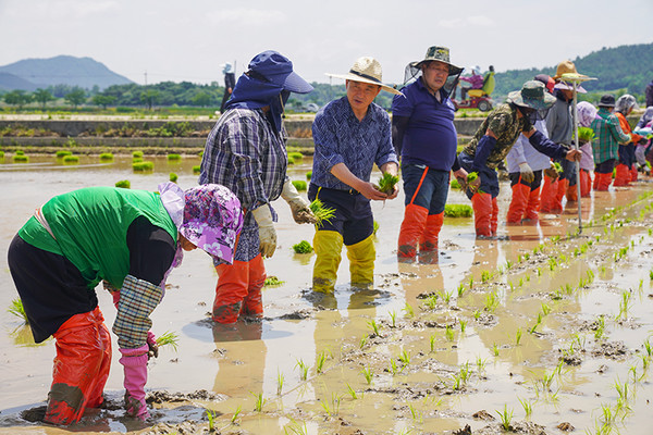 서영암농협(조합장 김원식)은 지난 달 31일 친환경 벼 집적화단지 내 학교 급식 시범포 재배단지에서 손 모내기로 벼 드문 모 심기 현장 시연회를 가졌다.