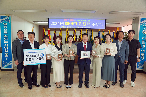 서영암농협(조합장 김원식)은 지난달 29일 NH농협손해보험 4연패 기념 동판 및 헤아림 인증직원 5명에게 인증패를 전달했다.