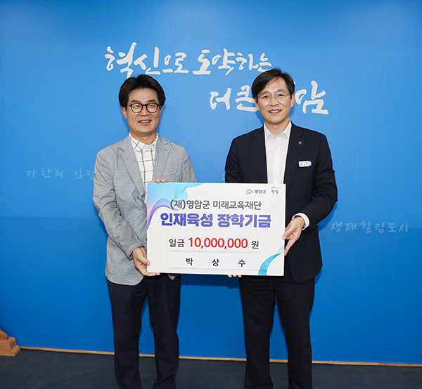 박상수 대표는 “영암군의 인재육성과 향토인재 발전, 지역 아이들이 꿈을 더 꿀 수 있게 장학금이 쓰이면 좋겠다”고 밝혔다.