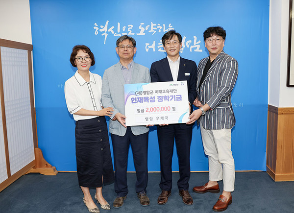 영암우체국이 지난 12일 (재)영암군미래교육재단에 장학기금 200만 원을 기탁했다.