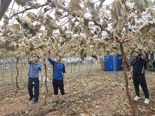 학산면은 23일 서영암농협, 지역사회보장협의체, 이장단과 함께 고온 피해를 입은 한 하우스 농가를 찾아 가지치기 등 봉사활동을 실시했다.