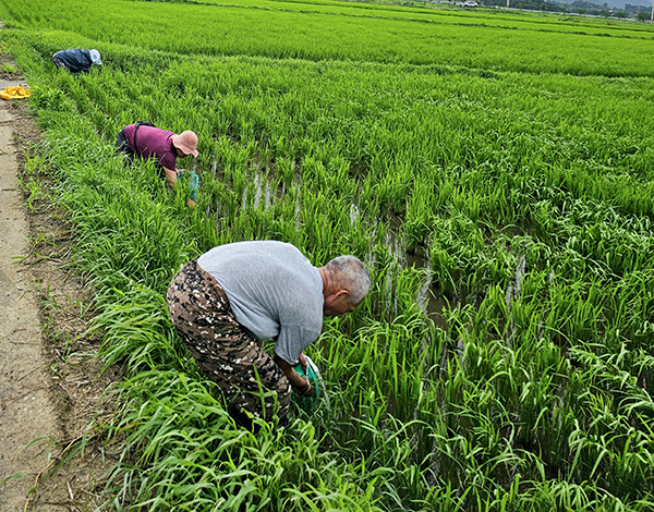 군은 이 같은 문제를 해결하기 위해 7월 한달을 왕우렁이 일제 수거 기간으로 정해 농업환경보전 프로그램 참여 농가와 함께 우렁이 알과 우렁이 약 2.3톤을 잡았다.