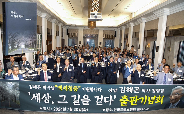 상암 김해곤 박사 자전적 칼럼집 ‘세상, 그 길을 걷다’ 출판기념회가 지난 7월 30일 한국프레스센터 프레스룸에서 성대하게 열렸다.