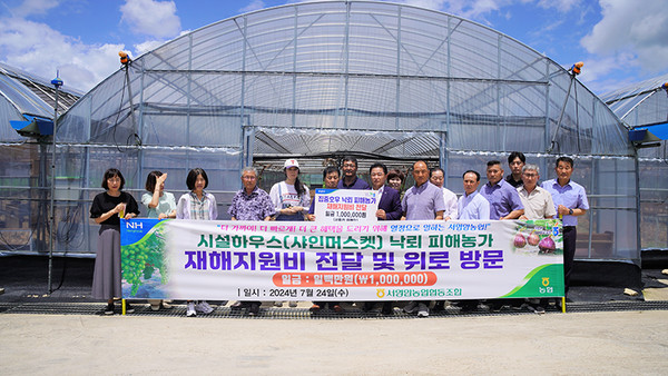 서영암농협(조합장 김원식) 임직원 20여 명은 지난 7월 24일 국지성 호우로 인해 시설하우스 피해를 입은 농가를 방문하여 재해지원비 100만 원을 전달했다.