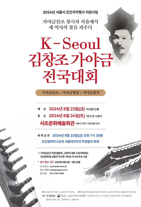 한국산조학회(이사장 양승희)는 이달 23~24일 서울 서초문화예술회관에서 ‘K-Seoul 김창조 가야금 전국대회’를 개최한다. 당초 대회명을 ‘제12회 서초 김창조 가야금 전국대회’로 개최할 예정이었으나 영암군이 대회 명칭과 장관 표창 수여 권리는 영암군에 있다며 문체부 등 관계기관에 이의 제기를 함에 따라 대회 명칭을 변경, 행사를 강행하고 있다. 시상도 당초 문체부 장관, 교육부 장관, 서초구청장, 서울시의회 의장상을 각각 추진했으나 서울시의회 의장, 국립국악원장, (사)국가무형유산총연합회장, 대회장상으로 변경했다.
