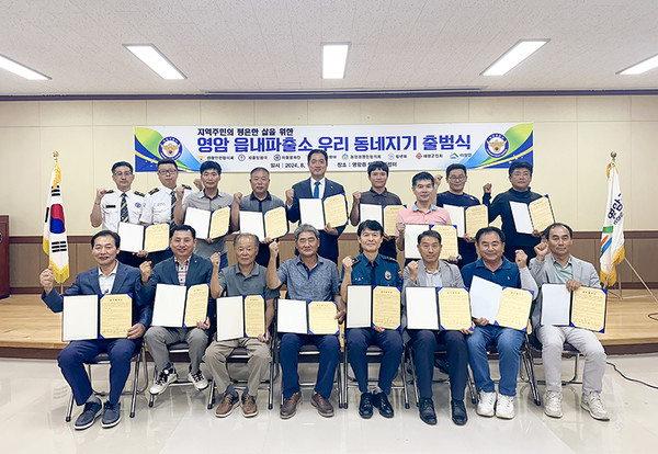 영암읍과 덕진면을 관할하는 읍내파출소는 13일 오후 영암읍 행정복지센터 회의실에서 생활안전협의회, 자율방범대, 자율방재단, 의용소방대, 농업경영인협의회, 재향군인회, 청년회, 이장단 등 관내 15개 단체와 업무 협약식을 갖고 실질적인 공동체 참여 치안 활동을 하는 ‘우리 동네지기’를 결성, 출범했다.