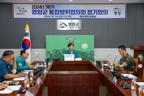 영암군은 14일 종합상황실에서 통합방위협의회 정기회의를 열고, 육군 제8539부대 3대대 등 민·관·군·경 합동 을지연습 준비 상황 등을 점검했다.