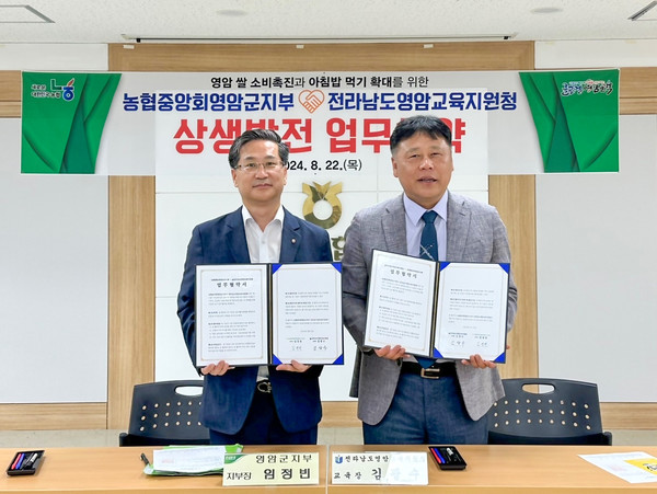 농협영암군지부(지부장 임정빈)와 영암교육지원청(교육장 김광수)은 22일 건강한 식습관 형성 및 영암 농축산물 소비확대를 위한 업무협약을 체결했다.