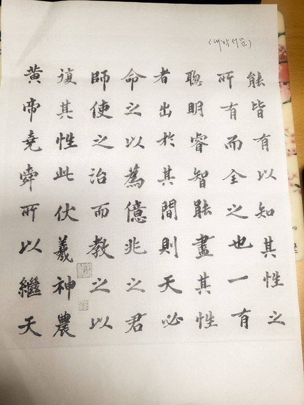 문 교수는 2018년 유교의 대표적인 경전인 ‘논어’ 전문을 4체(전서, 예서, 해서, 행서)로 완사한 데 이어 2020년 ‘맹자’에 도전, 약 3만5천 자에 이르는 전문을 완성하고 이번에 또다시 ‘대학’과 ‘중용’을 해서체로 완성하는 위업을 이뤘다.