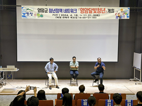 ‘영암달빛청년’은 올해 4월부터 매월 셋째 주 목요일 저녁 분야별 청년정책 관련 프로그램을 운영해 오고 있다. ‘지역 로컬산업과 일자리’를 주제로 한 이날 행사에는 지역기업에서 일하는 청년들이 참여해 청년친화도시 지정 퍼포먼스, 지역기반 일자리 특강, 참여자 좌담회 등에 참여했다.