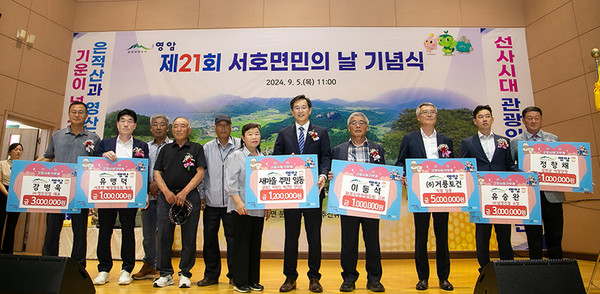 지난 5일 서호면민의 날 행사에서 거룡토건 직원 일동이 500만 원, 유승완 남경건설 소장과 강병욱 명신건업 대표가 각각 300만 원, 유맹덕 재경서호면향우회장과 이동석 전 재경서호면향우회장, 장복주 광양시 이장단장, 정항채 강진군 이장단장이 각각 100만 원, 새마을주민 일동이 120만 원을 기탁했다.