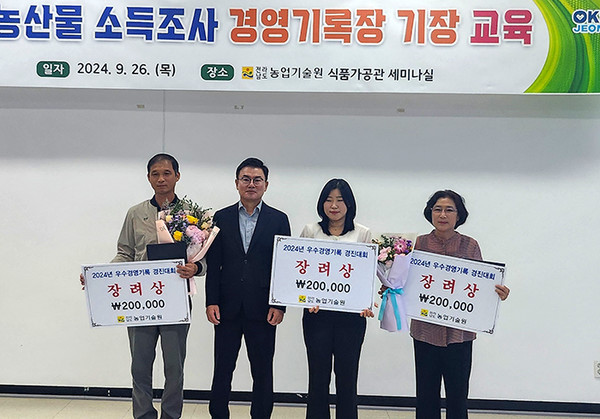 서호면 이재우, 도포면 기은숙 씨가 지난 9월 26일 전라남도농업기술원에서 개최된 ‘2024년도 우수 경영기록 경진대회’에서 자유기장 부문 우수상과 장려상을 각각 수상했다.