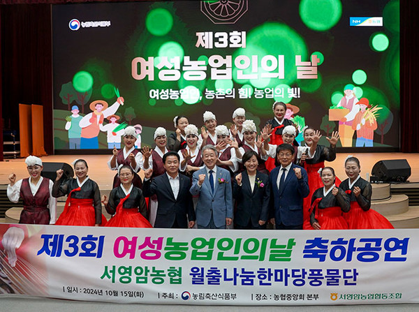 서영암농협 풍물은 지난 15일 농협중앙회 본관 대강당에서 열린 제3회 여성농업인의 날 기념행사에서 축하공연을 가졌다.