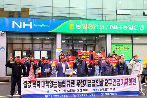 이어 “농협 조합장들은 지난 10월 초 2024년 농협 출하 물량에 대한 우선 지급금을 1등 기준 5만원으로 일방적으로 결정하였다. 농민단체들의 요구인 7만원은 물론이고 통합RPC 운영위원회를 통해 결정됐던 5만7천원에도 턱없이 모자란 금액으로 결정한 것”이라고 밝혔다.