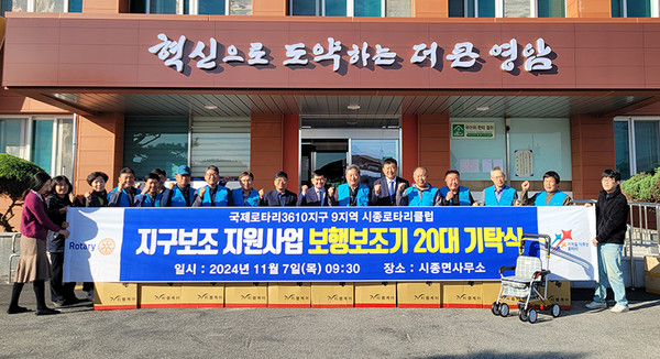 시종로타리클럽(회장 문영선)은 7일 걷기에 어려움을 겪는 어르신들에게 나눠달라며 시종면에 성인용 보행기 20대를 기부했다.