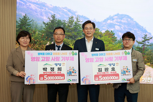 박 대표는 “영암에 고향사랑기부도 하고, 답례품을 지역에 재기부할 수 있어 뿌듯하다. 기부금과 답례품이 좋은 곳에 쓰이길 바란다”고 말했다.