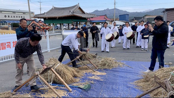 이날 마을주민들은 사물놀이, 강강술래 등 문화 공연과 손 홀태 탈곡 체험, 희망 메시지 전달 등 전통 농경과 공동체 문화를 전승하는 시간을 가지며 세대 간 화합과 내년 대풍을 기원했다.