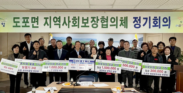 도포면 지역사회보장협의체(공동위원장 손석채, 정점순)는 지난 29일 행정복지센터에서 향우와 주민의 이웃돕기 성금 및 물품 기탁식을 열었다.