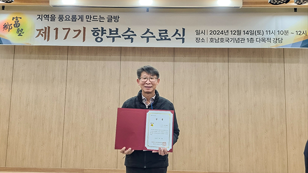 이영주 학산면장이 14일 순천시 호남호국기념관에서 열린 ‘제17기 향부숙(鄕富塾) 정책발표’에서 렌터카유치 정책으로 최우수상을 수상했다.