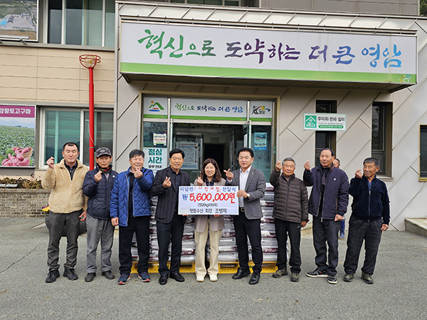 건어물 도매업체인 (유)명도수산 조병제 회장이 11일 어려운 이웃에 전해달라며 미암면 지역사회보장협의체에 560만 원 상당의 20kg 쌀 100포를 기부했다.
