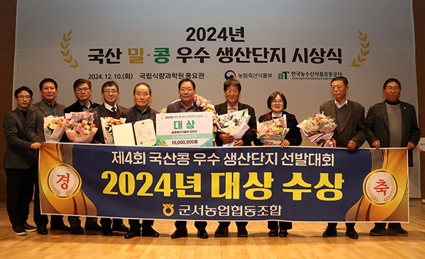 군서농협(조합장 박현규)이 농림축산식품부가 주최하고 한국농수산식품유통공사(aT)가 주관한 ‘2024년 국산 밀·콩 우수 생산단지에 선정됐다.