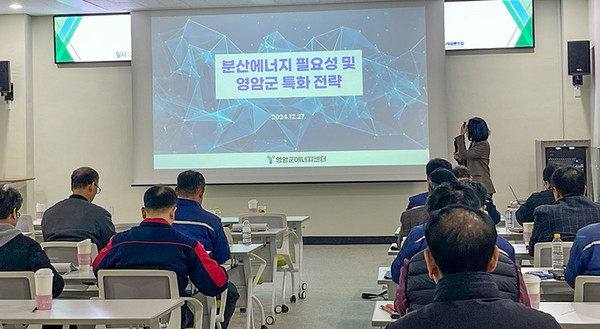 오 센터장은 강연에서 영암군의 분산에너지 특화지역 유치 전략을 소개하며, 영암군이 분산에너지 특화지역 선정 이점과 여건 분석에 대한 강의를 했다.