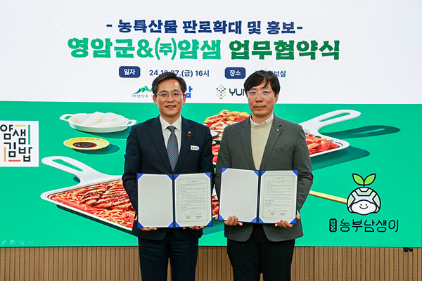 특히, ㈜얌샘은 주메뉴인 김밥에 영암 쌀을 사용하고, 영암의 우수 농특산물을 활용해 새로운 분식 메뉴를 개발해 판매하기로 했다.