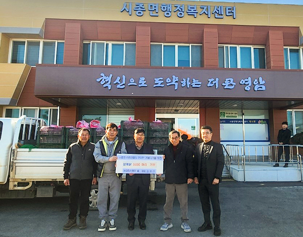 시종면 소재 농업회사법인 율(대표 권용진)은 3일 관내 어르신들의 건강하고 따뜻한 겨울나기를 위해 써달라며 삼계닭 3천 마리를 시종면 행정복지센터에 기부했다.