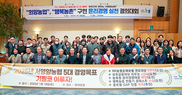 서영암농협(조합장 김원식)은 18일 삼호 현대호텔 회의실에서 임직원 60여명이 참석한 가운데 2025년 경영관리 방향 및 목표 달성 결의대회를 가졌다.